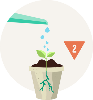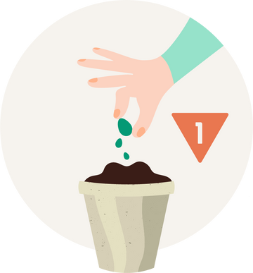 Fill your pot with soil & plant seeds following packet directions. Follow up with a generous gulp of water.
